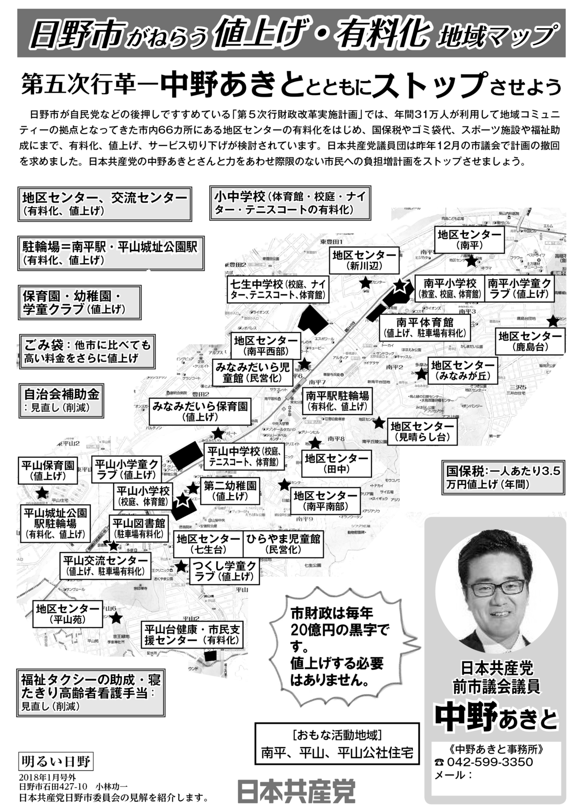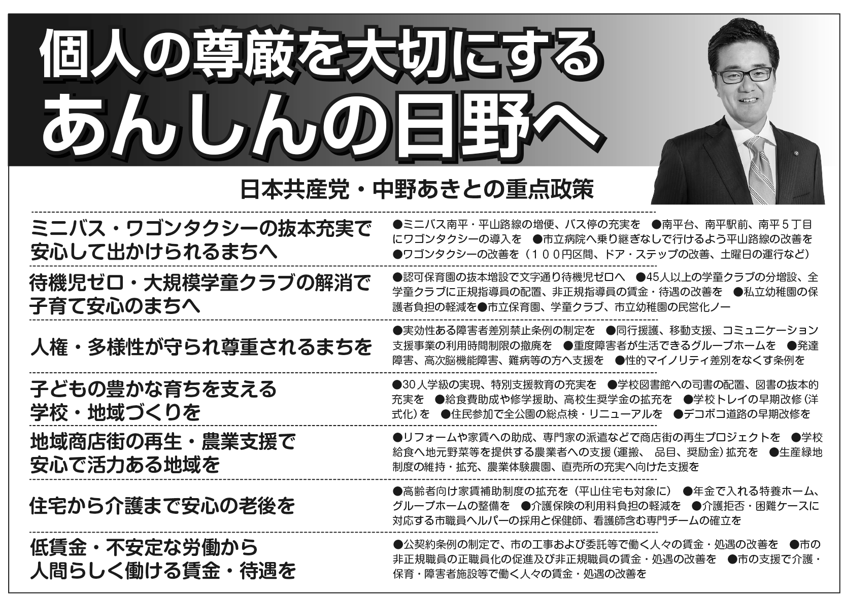 中野あきと(なかの あきと) 福岡県久留米市生まれ。51歳。中央大学法学部卒。1998年の市議選に初当選以来、6期20年にわたり市議会議員。市議会副議長、環境まちづくり委員長、都市計画審議会委員、農業委員など歴任。小学生時代は柔道、中学は柔道とともにバレーボールに熱中。大学時代は人権ゼミサークル、学費値上げ反対運動などに取り組む。最近、「心に残った」一冊は「校庭に東風吹いて」、映画は「顔のないヒトラーたち」。家族は妻と二女。 連絡先 090-5329-7859 ,http://gdata.youtube.com/feeds/api/videos/a0vbXM1JyVg,,{"playerWidth":"640","useCustom":false,"autoPlay":false,"autoLoop":false,"autoNext":false,"quality":"default","qualityName":"自動","coverImage":""} ページトップへ